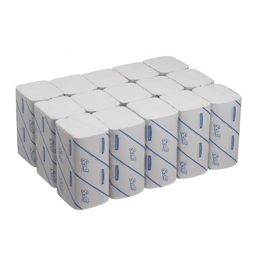 Scott® hand towels are softer, more absorbent and stronger than conventional towels, providing consistent quality at an affordable price. The clever, interfolded design helps to prevent towels from ripping when being pulled from the dispenser, and ensures only single towels are dispensed each time, reducing mess and wastage. The unique Airflex™ technology ensures that each lightweight single-ply towel is absorbent and strong, even when wet, preventing them from becoming soggy or ripping. Scott® hand towels carry the European Ecolabel; your guarantee that they are manufactured responsibly at every step of the process. Individual sheet size 21cm (L) x 21.5cm (W). Compatible with Aquarius™ Folded Hand Towel Dispensers (product codes 6945, 6956 and 7171) and Kimberly-Clark Professional™ Folded Hand Towel Dispensers (product code 9962 and 8971).
