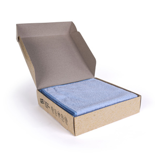 Five cloths packed in a presentable box which is made from recycled and recyclable card.