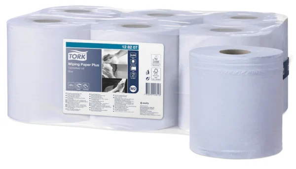 The 2-ply multipurpose Tork Wiping Paper Plus is ideal for mopping up liquids and hand wiping. This paper can be used in the Tork® Centrefeed dispenser, which is a high capacity versatile solution for professional environments where both hand and surface wiping is required.