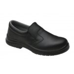 A lightweight minimal design slip-on safety shoe is a great choice for all-day support and comfort, it has a breathable liner with a steel toe cap to keep you protected at all times. Perfect for use in a variety of environments, especially where hygiene and cleanliness are of most importance.