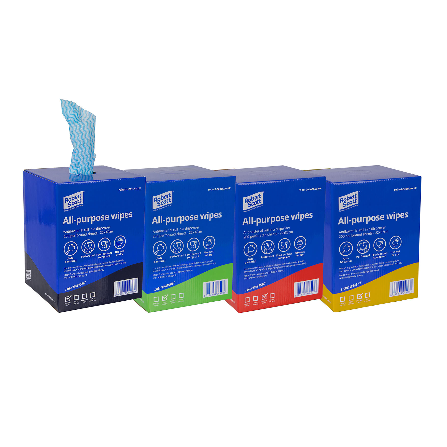 It contains a roll of 200 perforated lightweight tear-off wipes, ideal for single use on any surface to prevent cross-contamination as part of your hygiene colour coding system.